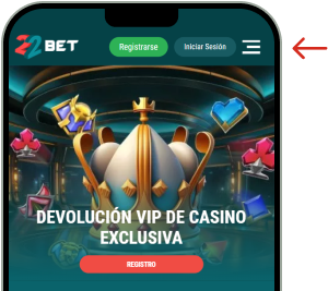 Abre la aplicación 22Bet y elige el botón “Registrarse”.